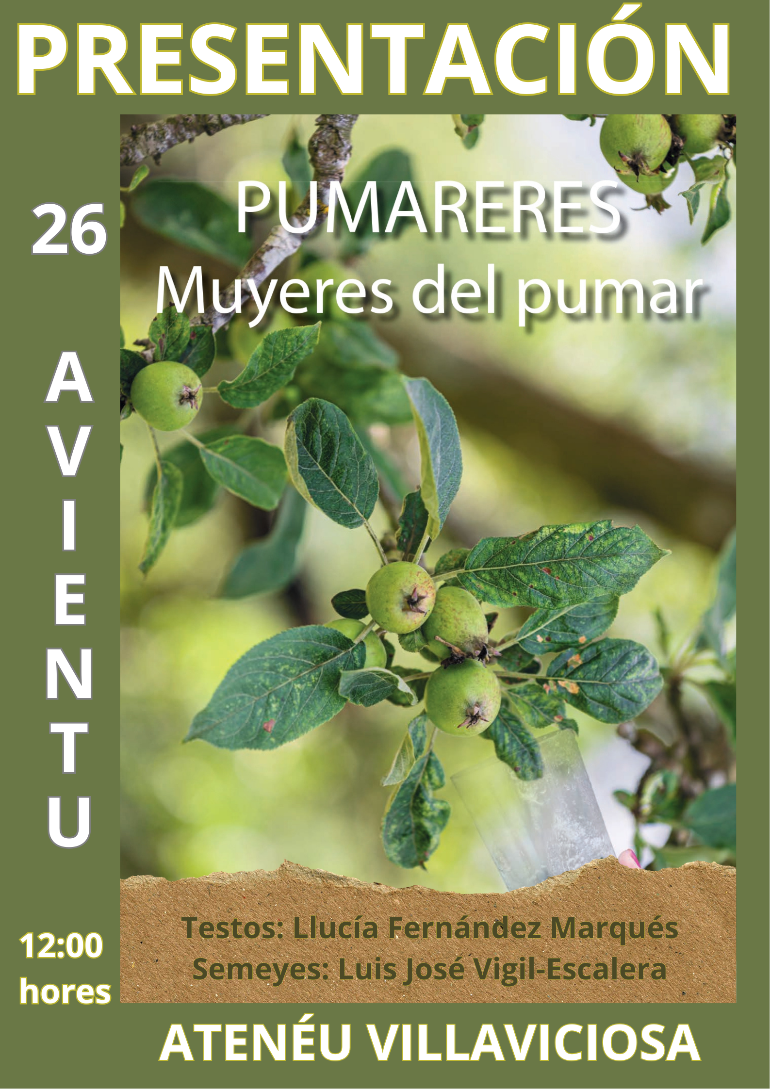 Villaviciosa va convertise esti 26 d’avientu nun espaciu de reconocencia y memoria colectiva cola presentación del llibru Pumareres. Muyeres del Pumar, una obra que pon nel centru la voz y l’esperiencia de les muyeres venceyaes al cultivu de la mazana y a la cultura de la sidre n’Asturies. L’actu va celebrase a les 12 hores en L’Ateneu Obreru de Villaviciosa