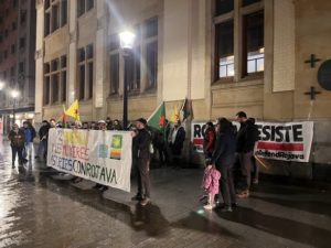 La concentración de Xixón entamó nun momentu de tensión n’Ecuador Próximu na que’l futuru d’AANES y la rexón de Rojava ta sentíu como una cuestión de solidaridá internacional y de defensa de la dignidá humana. L’activismu en Asturies busca que la so voz sume a la de millones de persones que reclamen un fin pacíficu al conflictu siriu y el respetu de los drechos del pueblu kurdu.