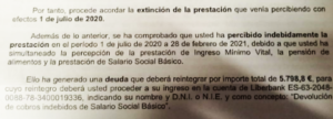 A nivel asturianu, col Salariu Social, la situación ye la mesma: una familia comunica que cambió la so situación —por exemplu, porque entamó a cobrar el IMV o porque consiguió un emplegu—. Pero hasta que l’Alministración resuelve oficialmente l’expediente, la prestación sigue pagándose. Les cuantíes son en sí mesmes tan escases que la persona que les recibe considera que tien drechu a les dos, siendo ello que sumaes cubren malpenes les necesidaes familiares. Cuando finalmente llega la resolución, meses o años dempués, l’Alministración reclama la devolución de tol dineru que se siguió cobrando nel entemediu.