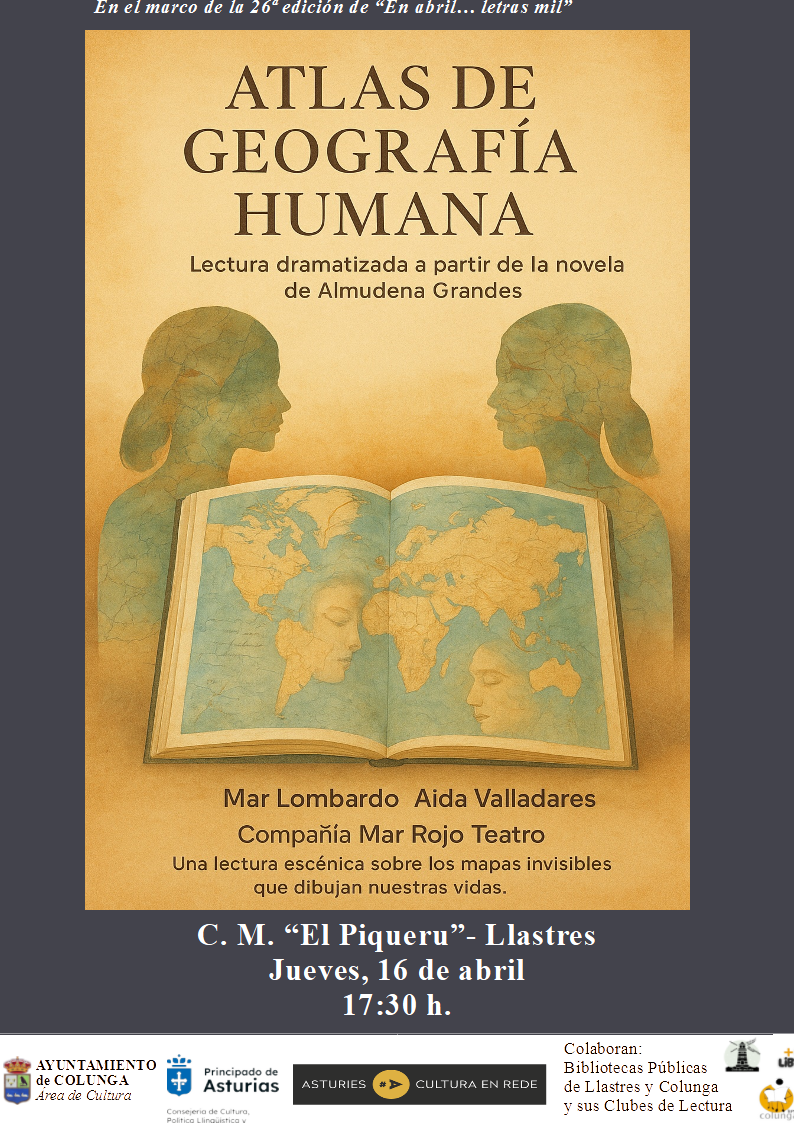 La primera cita va tener llugar el xueves 16 d’abril, a les 17:30 hores, nel Centru Municipal “El Piqueru” de Llastres. Trátase d’una llectura dramatizada basada na obra Atlas de geografía humana, que combina elementos de la llectura escénica cola representación teatral.